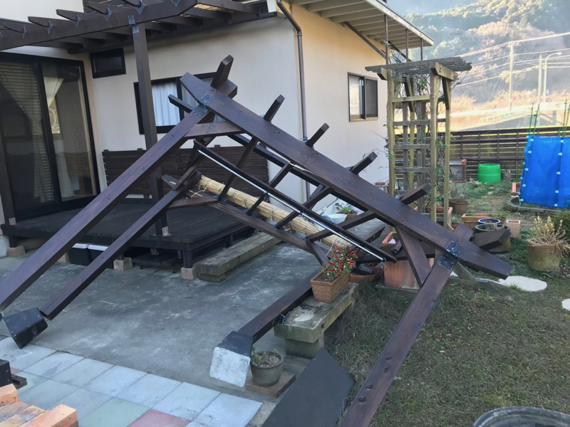 時間と材料費をかけてせっかく作ったパーゴラが。