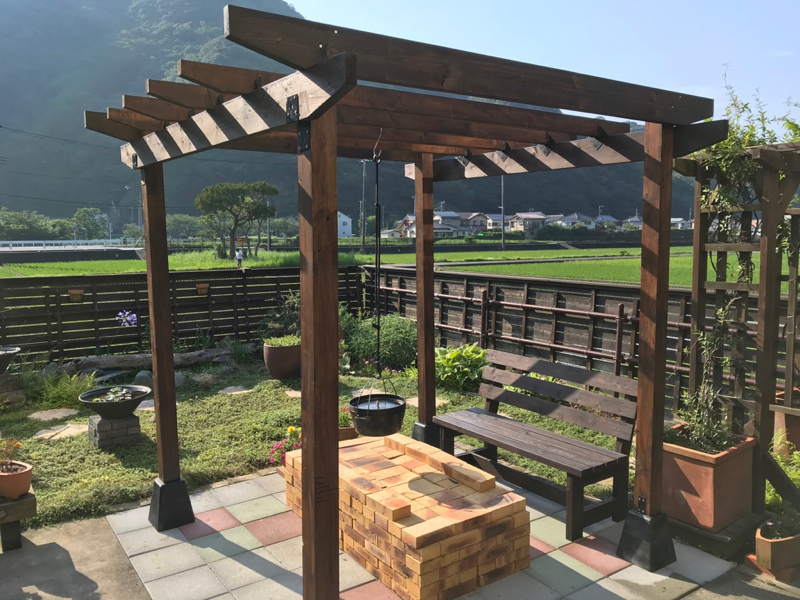 このパーゴラを作ったおかげで、バーベキュースペースがぐっとリッチな空間になりました。