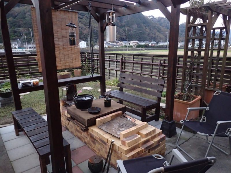 耐火煉瓦を積み上げて作ったバーベキューグリルの上に、屋根っぽいものがあるとカッコいいかも!🤩と、思いついたのが発端でした。