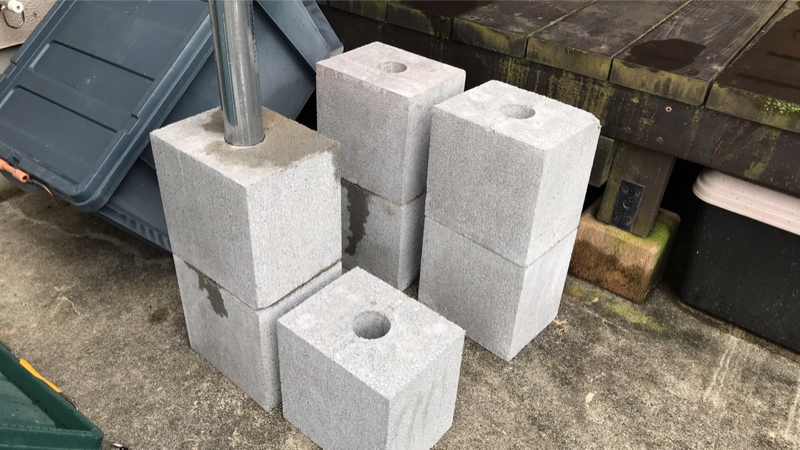 そこで、最寄りのホームセンター「コメリ」で、単管用のピンコロを呼ばれる穴の空いた沓石を買ってきました。