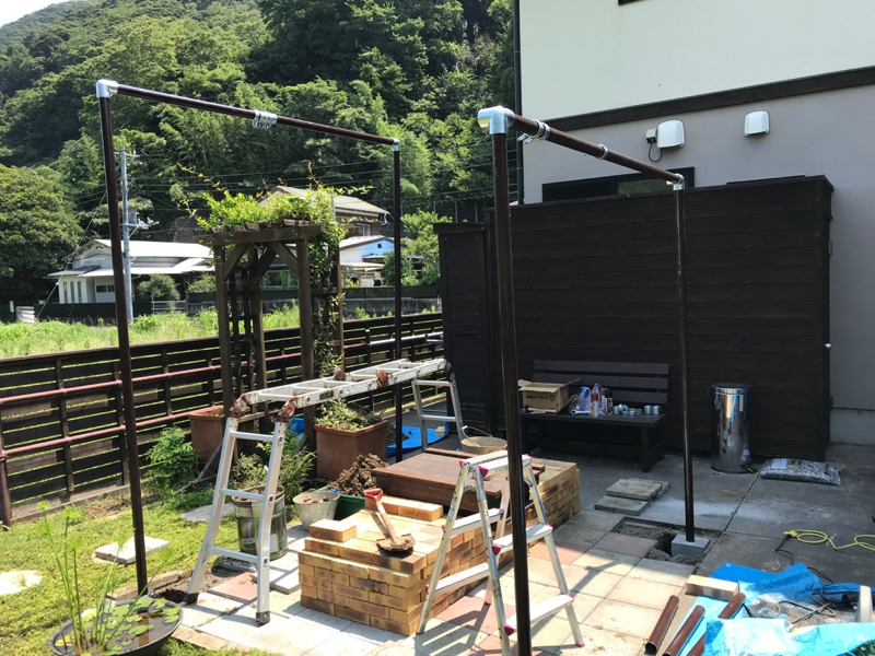 やっぱり半年の命だった木製パーゴラに比べると、あんまりカッコよくないよなー。