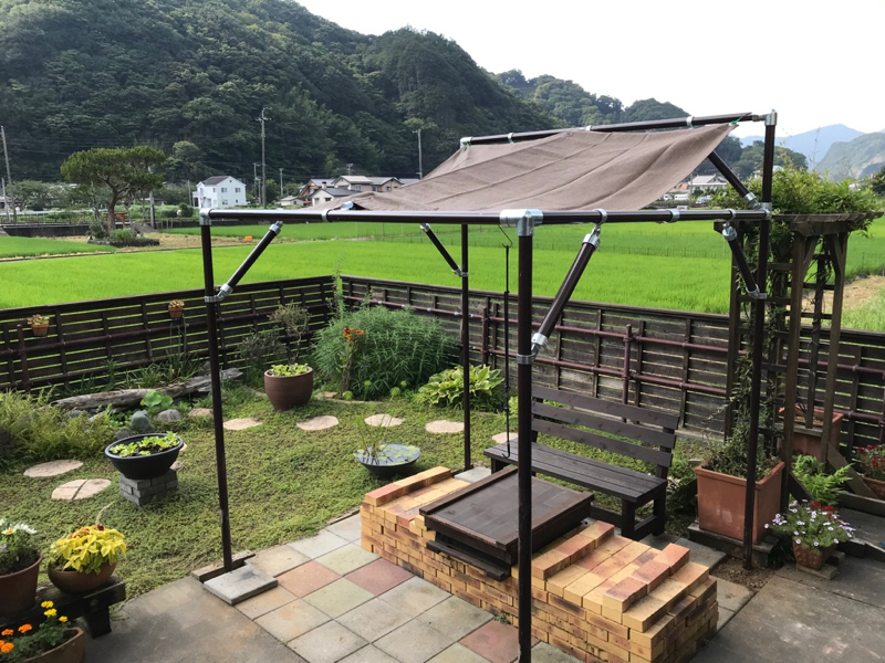 シェードを張って日よけにしたり、小雨の降る日にはこの上に防水シートをかけてBBQしたりもして、それなりに役には立っていますが。