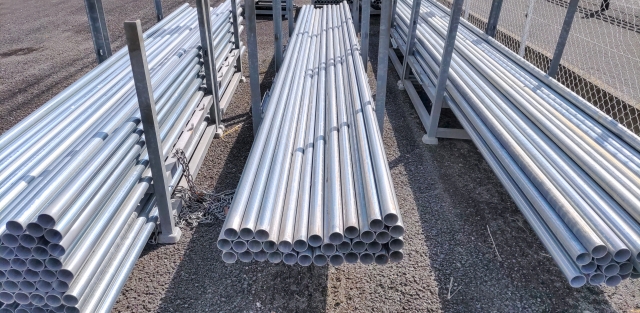 単管は丈夫な金属の棒(断面は丸で、中は中空)で、1m、2mといった具合に長さ別に何種類かあります。